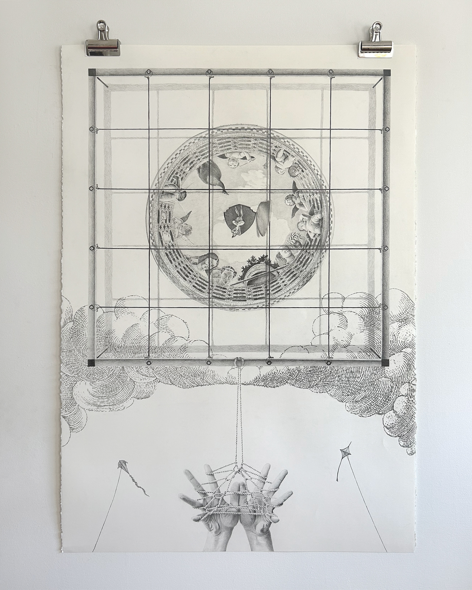 A world-without-memory and of unstable dimensions, 19x25", Graphite, 2023